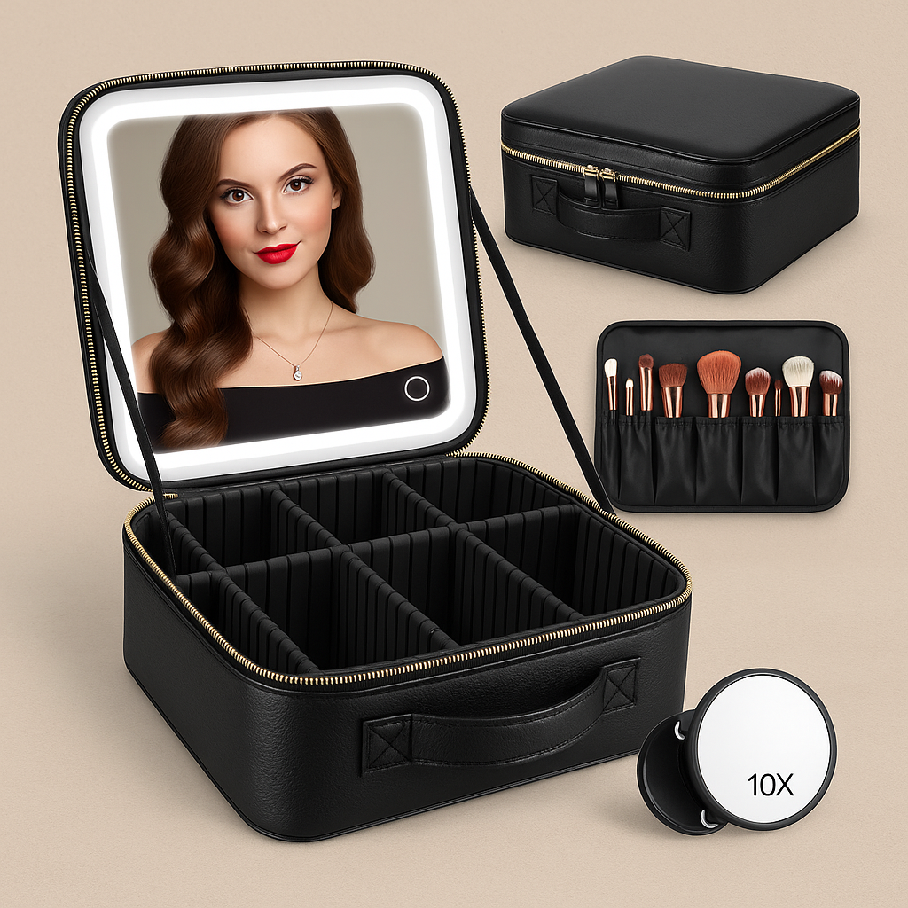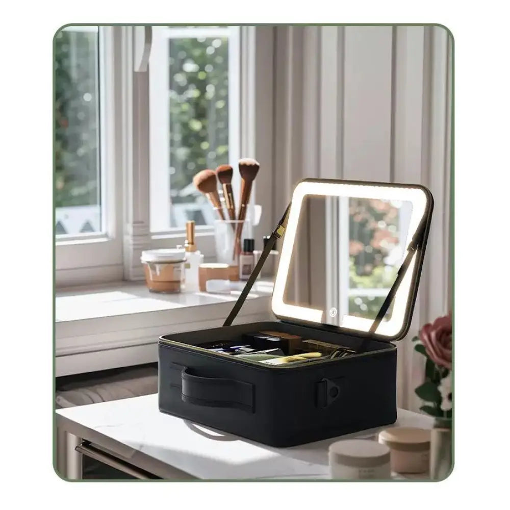 - Integrisano LED ogledalo sa podesivim osvetljenjem: Zaboravite na loše osvetljenje u hotelskim sobama ili tamnim kupatilima. Naša torba poseduje ugrađeno ogledalo sa LED svetlima koja imitiraju prirodnu svetlost, omogućavajući vam besprekorno nanošenje šminke. Tri režima osvetljenja (hladno, toplo, prirodno) i mogućnost podešavanja intenziteta obezbeđuju savršene uslove za svaki tip šminke.